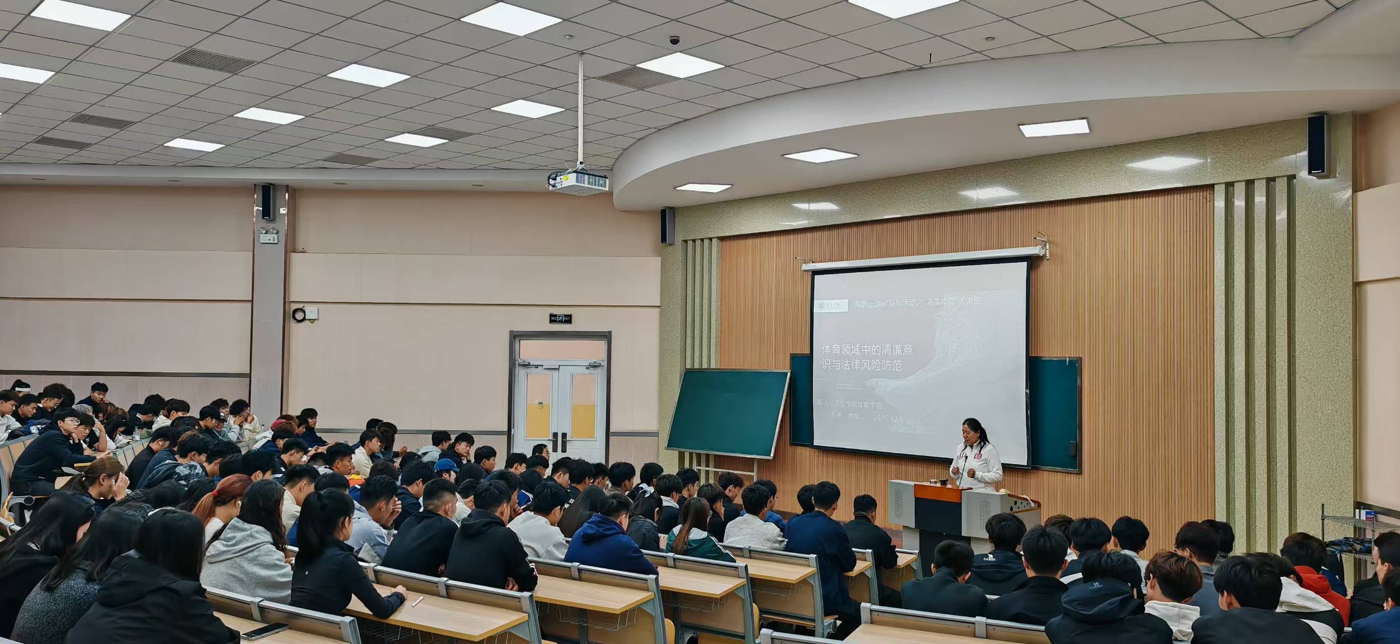 作为 “清律运动哨” 系列活动的重要部分,此次大讲堂是将廉洁教育与体育专业培养融合的创新实践。廉洁素养与法律风险应对能力,是体育教练、赛事运营、运动康复等岗位的核心要求,活动有效填补了师生相关知识空白。