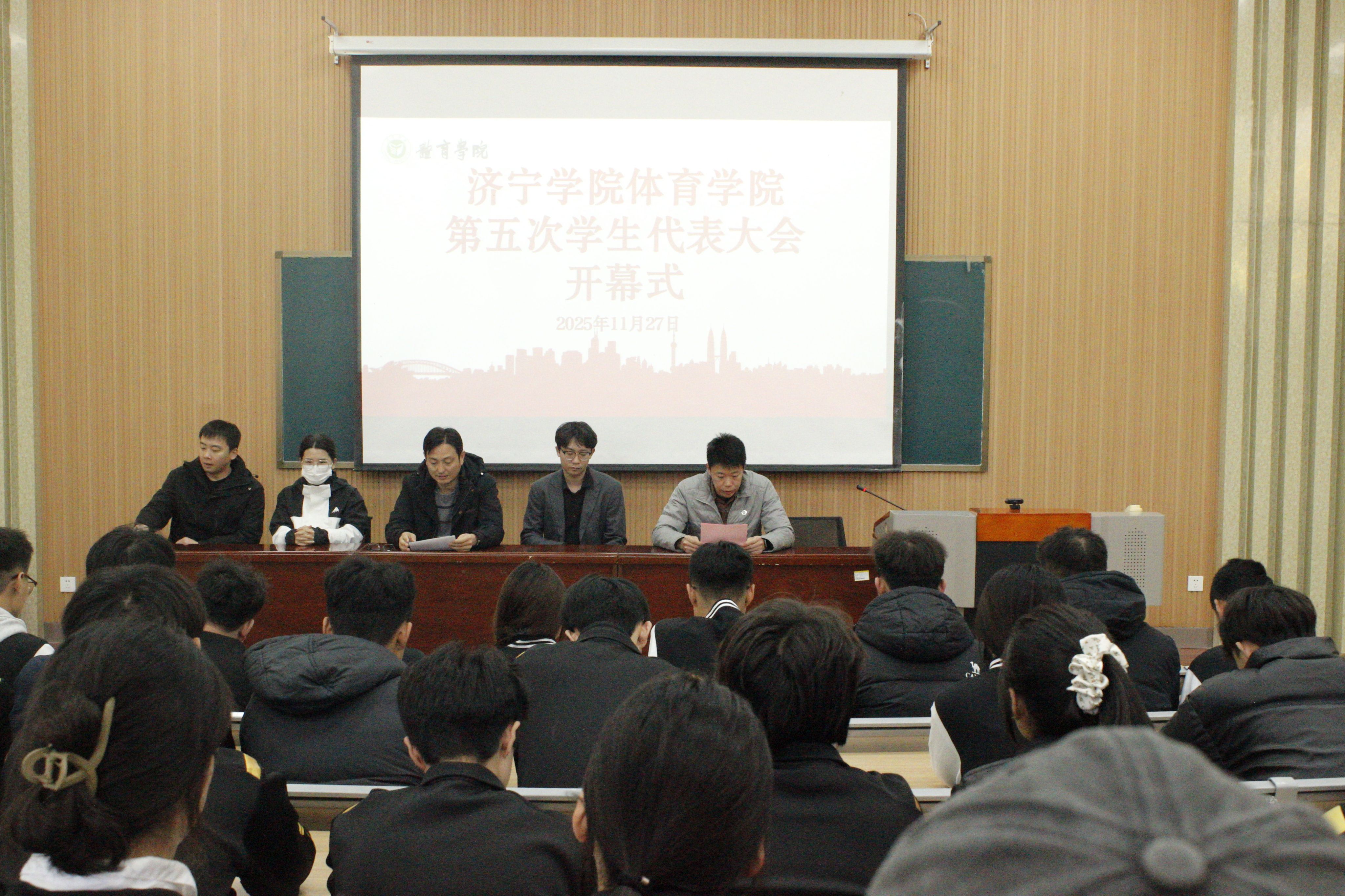 11月27日,体育学院于4号楼B101教室召开了第五次学生代表大会。体育学院党委副书记蒿鹏,校学生会主席高浩然,辅导员徐海峰、王天聪、闫晓晓应邀出席开幕式,55名学生代表参加此次会议。
